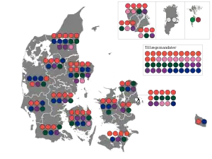 | Danish Social Liberal Party | 413,620 | 14.34 | 27 | 0 | |