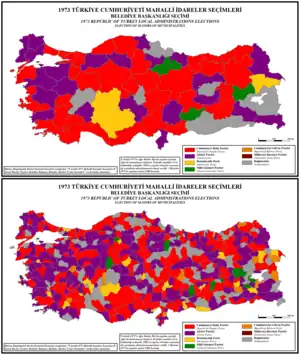 Local elections were held in Turkey on 9 December 1973. In the elections, both the mayors and the local parliaments (Turkish: İl Genel Meclisi) were elected. The figures presented below are the results of the local parliament elections.[1][2]