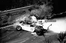 The 1976 German Grand Prix (formally the XXXVIII Großer Preis von Deutschland) was a Formula One motor race held at the Nürburgring on 1 August 1976.[4] It was the scene of reigning world champion Niki Lauda's near-fatal accident, and the last Formula One race to be held on the Nordschleife section of the track. The 14-lap race was the tenth round of the 1976 Formula One season and was won by James Hunt.