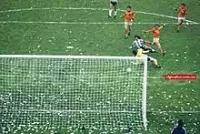 Daniel Bertoni sealed the game in the second half of extra time after Kempes made a long run into the box, and was tackled by a Dutch defender. The ball ricocheted several times before landing at the feet of Bertoni, who had a clear sight of goal inside the box. Jongbloed was unsighted by the ricochet, and was thus out of position, allowing Bertoni to slot in easily.[5]