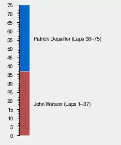 Carlos Reutemann started on pole with the Brabham duo of John Watson and Niki Lauda second and third. Watson had a good start and led into the first corner, whereas Reutemann collided with James Hunt and had to pit for repairs, which left Patrick Depailler and Lauda second and third. For the first half of the race, the top three remained the same until Watson had an off allowing Depailler and Lauda through, but the latter then suffered a puncture and had to pit for tyres before charging back up and retaking second from Watson towards the end of the race. At the front, Depailler took his first career victory with Lauda second, and Jody Scheckter third after Watson made another mistake in the final laps. Jean-Pierre Jabouille's 10th-place finish was Renault's first race finish.