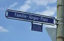 Plaque at the Familie-Jürges-Platz in Frankfurt.