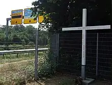 A white, wooden cross in memory of the Jürges family killed in the Starfighter crash.
