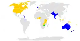 Highlighted are the countries to participate in the 1983 Cricket World Cup.