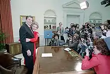 Ronald Reagan announcing his reelection campaign from the Oval Office on January 29, 1984