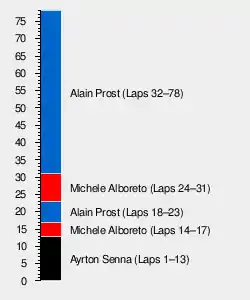 | Ret | 1 | McLaren-TAG | 17 | Spun off | 14 | ||