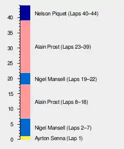 Piquet's win vaulted him into the championship lead for the first time in 1987, putting him four points ahead of Senna and nine ahead of Mansell.