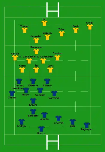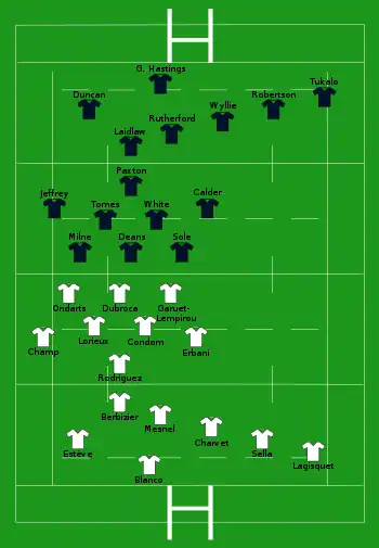 | Try: Lagisquet (2) Charvet (2) Sella Andrieu Camberabero Erbani Laporte Con: Laporte (8) Pen: Laporte | Pen: Bezuscu (4) |
