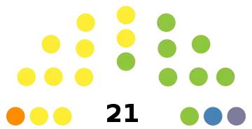 All 21 seats in Parliament 11 seats needed for a majority | |||||||||||||||||||||||||||||||||||||||||||||||||||||||||||||||||