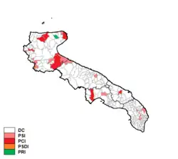 Christian Democracy was by far the largest party, largely ahead of its major competitors, the Italian Communist Party, which had its worst result ever in a regional election, and the Italian Socialist Party, that gained its best result ever and even surpassed the Communists.