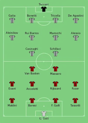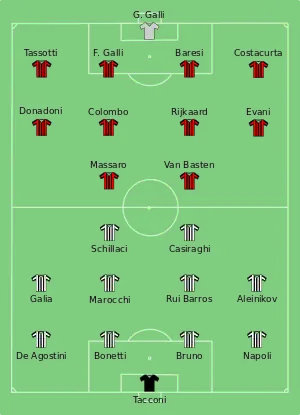 The 1990 Coppa Italia Final decided the winner of the 1989–90 Coppa Italia. It was held on 28 February and 25 April 1990 between Juventus and Milan. The first leg at the Stadio Comunale in Turin ended in a goalless draw while the second leg at the San Siro in Milan was followed two months later and ended in favour of Juventus, after the only goal scored by Roberto Galia.
