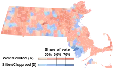 As of 2018, this is the most recent gubernatorial election in which Amherst, Cambridge, Leverett, Shutesbury and Wendell each voted for the Republican candidate.
