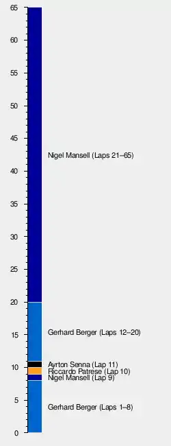 1 5 United Kingdom Nigel Mansell Williams-Renault 65 1:38:41.541 2 10