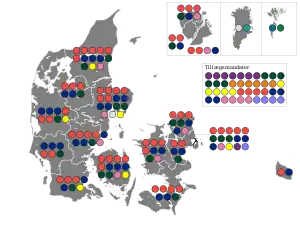 The sole elected independent MP in Denmark proper was Jacob Haugaard, who was associated with the Union of Conscientiously Work-Shy Elements. As of 2023, this is the only time an independent candidate has been elected to parliament under the current constitution. The re-election of the prime minister was also notable for being a rare example of Condorcet paradox observed on a country scale, discovered through prior opinion polls.[3]
