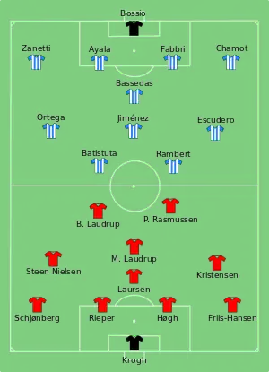 The 1995 King Fahd Cup final was a football match to determine the winners of the 1995 King Fahd Cup. The match was held at King Fahd II Stadium, Riyadh, Saudi Arabia, on 13 January 1995 and was contested by Denmark and Argentina. Denmark won the match 2–0.