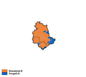 Bruno Bracalente (Democratic Party of the Left) was elected President of the Region, defeating Riccardo Pongelli (Forza Italia) by a landslide.