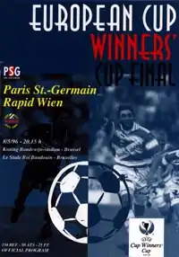 The 1996 UEFA Cup Winners' Cup final was a football match contested between Paris Saint-Germain of France and Rapid Wien of Austria. It was the final match of the 1995–96 UEFA Cup Winners' Cup and the 36th Cup Winners' Cup final. The final was held at King Baudouin Stadium in Brussels on 8 May 1996, hosting its first European club final since the scenes of the Heysel Stadium disaster eleven years prior. Paris Saint-Germain won the match 1–0, thanks to a free kick from Bruno Ngotty.