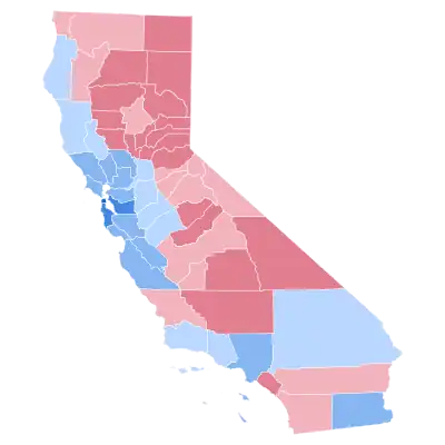 In contrast, Clinton flipped no counties in the state from red to blue, making this the first election since 1980 in which no red counties in the state turned blue. Clinton became the first Democrat to win the White House without carrying Fresno County since the county's founding in 1856, and remains the only one to have done so as of 2020.[3] He also became the first Democrat since Woodrow Wilson in 1912 to win the White House without carrying Plumas County.[3] Nevertheless, Clinton retained seven counties that he had been the first Democrat to carry since 1964 in 1992: San Bernardino, Ventura, San Joaquin, Santa Barbara, Monterey, Imperial, and San Benito, of which all save Imperial and San Benito cast over 100,000 votes. He also retained all the counties that had voted Democratic in 1988, including a number of sizeable ones that had voted Republican in 1976, such as Santa Clara, Contra Costa, San Mateo, and Sonoma. This was the last election in which California voted to the right of Arkansas, Michigan, Minnesota, or West Virginia. This was also the first election since 1912 in which California voted differently than nearby Montana.