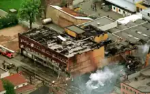 The explosion was more powerful than planned, possibly because too little gravel was used over the explosive.[3] Shock waves could be felt 500–600 meters away from the explosion site, severely damaging nearby buildings, including the Drammens Is factory. After the initial explosion, the clubhouse re-ignited twice before the entire building collapsed in a major fire.[4] Three people inside the building survived.[3] Irene Astrid Bækkevold, a fifty-one-year-old woman from Skjetten who was driving past the scene in her car, was killed in the bombing[5] and a total of twenty-two people were transported to hospital. Bækkevold's husband, who was a passenger in her vehicle, was among the wounded.[4] At Drammen Hospital, a full emergency alert was announced and disaster preparedness was established, the first time such measures had been necessary at the hospital.[1]
