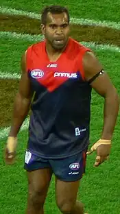 ![]() Byron Pickett, winner of the 1998 AFL Rising Star award, playing for Melbourne during the 2007 AFL season | |