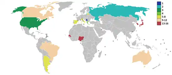 - 1996 Summer Olympics: 12 teams competing for 1 berth, removed from that country's FIBA zone.