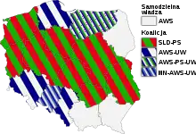 - ↑ Zarycki, Tomasz (1999-01-01). "Wybory samorządowe w 1998 r." Grzegorz Gorzelak (Ed.) Decentralizacja terytorialnej organizacji kraju: Założenia, przygotowanie, ustawodawstwo. CASE Foundation, Warszawa.