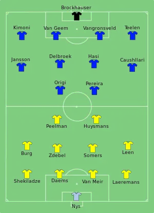 Prior to the match, Genk coach Jos Heyligen criticised the timing of the match during the week of international matches, as five players in his squad were unavailable due to being called-up for their respective national team, namely Branko Strupar, Marc Hendrikx, Ferenc Horváth, Þórður Guðjónsson and Bjarni Guðjónsson. With several others injured, the Genk squad for the Super Cup included only 13 first team players together with four youngsters from the U23 squad. From Lierse side, absentees due to call-ups were Jurgen Cavens and Carl Hoefkens. [1]