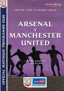 The 1999 Football Association Charity Shield (also known as The One 2 One FA Charity Shield for sponsorship reasons) was the 77th FA Charity Shield, an annual English football match played between the winners of the previous season's Premier League and FA Cup competitions. The teams involved were Manchester United, who had won both the Premier League and FA Cup as part of the Treble the previous season, and Arsenal, who finished runners-up in the league. Watched by a crowd of 70,185 at Wembley Stadium, Arsenal won the match 2–1.