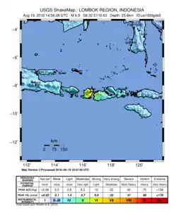 ![]() Shakemap for the 19 August 2018 Lombok earthquake | |
