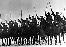 Horsemen of the 1st Guards Cavalry Corps riding victoriously during the Moscow Counteroffensive Phase, 22 December 1941