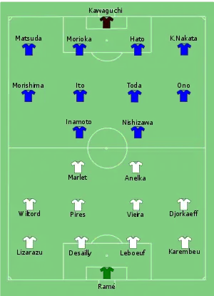 - ↑ "Classy France outplay Japan". BBC Sport. 10 June 2001. Archived from the original on 26 March 2014. Retrieved 12 April 2012.