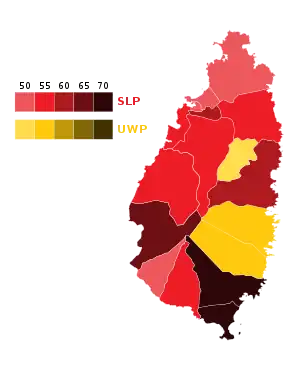| Saint Lucia Labour Party | 34,053 | 56.01 | 14 | –2 | |