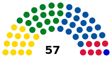 All 57 seats in the Legislative Assembly 29 seats needed for a majority | |||||||||||||||||||||||||||||||
