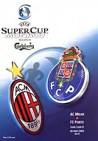 The 2003 UEFA Super Cup was played on 29 August 2003 between Milan of Italy and Porto of Portugal. Milan qualified by defeating Juventus in the 2003 UEFA Champions League Final, while Porto qualified by beating Celtic in the 2003 UEFA Cup Final. Milan won the match 1–0.[4] After the match, defeated Porto manager José Mourinho said, "We leave here convinced we can go into the UEFA Champions League with the hope and certainty we can compete with any team." They finished the season as 2003–04 UEFA Champions League winners.
