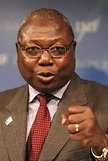 Ten other candidates also contested the presidential election, including one former president and three former prime ministers. André Kolingba, who ruled the Central African Republic from 1981 until his defeat in the 1993 election, was the candidate of the Central African Democratic Rally (Rassemblement démocratique centrafricain). He came in second in the September 1999 election, although Patassé defeated him by a wide margin.[6] Abel Goumba also ran as the candidate of the Patriotic Front for Progress (Front patriotique pour le progrès); a long-time politician, he served as prime minister in the late 1950s and again from March to December 2003, following Bozizé's seizure of power, subsequently becoming vice-president under Bozizé until being dismissed shortly after the first round of the election.[7] He previously ran for president in 1981, 1993, and 1999; in 1993 he came in second place and was defeated by Patassé in the run-off.[6] Additionally, Martin Ziguélé, who was prime minister from 2001 to 2003 (Patassé's last prime minister prior to his ouster), contested the election, along with Jean-Paul Ngoupandé of the National Unity Party (Parti de l'unité nationale), who was prime minister from 1996 to 1997.