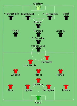 | 18 | MF | Yuri Zhirkov | 3 | 0 | 3 | 0 | 0 | 0 | 1 | 0 | 0 | 0 | 0 | 0 | 7 | 0 | |