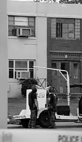 When investigators entered Hinrichs' apartment the morning after the explosion, they found more TATP and the necessary chemicals to make more of the substance.[6] Since TATP becomes more unstable as time passes, the Norman Police and the FBI evacuated Hinrichs' building and the four apartment buildings that surrounded it as a precaution. A suicide note was displayed on Hinrichs' open laptop monitor. While detectives were unable to completely retrace Hinrichs' steps that day, they did find that Hinrichs typed "None of you are worth living with. You can all kiss my ass" at about 6:15 pm that evening, approximately 75 minutes before he died.[16] The message was on the computer screen when agents entered Hinrichs' apartment.[17]