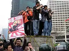 - ↑ Aglionby, John; McCurry, Justin; Watts, Jonathan (2005-04-22). "MPs undermine Japanese apology to China". The Guardian. ISSN 0261-3077. Retrieved 2023-05-15.