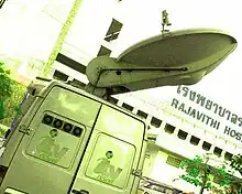 An ITV news van is parked at the Rajavithee Hospital, where most of the victims of the blasts were treated.