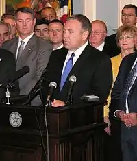 On election day, Republicans gained 2 seats, resulting in the Senate being evenly split between Republicans and Democrats. A power splitting agreement was reached where there would be two President pro tempores, with two chairs and vice chairs for each committee.[4] However, Democrats maintained a functioning majority otherwise because they held the Lieutenant governorship, who holds the tie breaking vote.