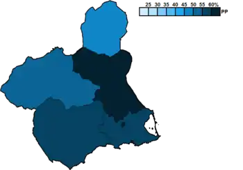 ![]() Constituency results map for the Regional Assembly of Murcia | |||||||||||||||||||||||||||||||||||||||||||||