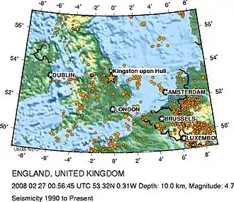 16. "Magnitude 4.8 – England, United Kingdom". United States Geological Survey. 27 February 2008. Archived from the original on 2 March 2008. Retrieved 27 February 2008.