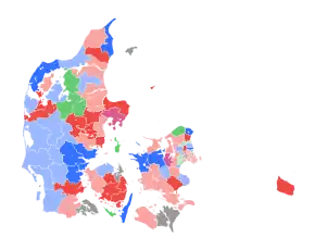 | B | Danish Social Liberal Party (Radikale Venstre) | 3.7 % | -1.4 % | 50 | |