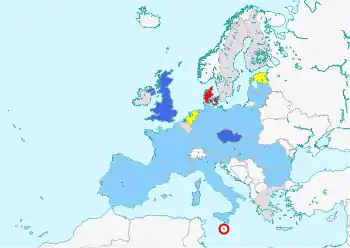 † – Includes Gibraltar, but not any of the other overseas territories or Crown dependencies.