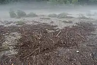 Other rivers temporarily rose over their banks after strong local rainfall. In Bohemian Switzerland, the Kamenice flooded parts of Janská on the evening of 1 July.[58] On 6 July sudden thunderstorms hit Ústí nad Labem Region, where a state of emergency had to be called in some places. West and South Bohemia were also severely threatened in places like Tábor. The authorities feared a burst of dams of artificial lakes and considered evacuating the affected villages.[59]