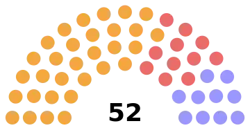| Total seats: | 18 | 9 | 7 | 7 | 6 | 5 | 52 | ||