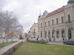 The erection of the statue itself was criticized in February 2009 by the extremist and nationalist Slovak National Party (SNS),[2] one of the parties in Slovakia's governing coalition, because the town had not erected statues of Saints Cyril and Methodius, two Byzantine Greek missionaries among the Slavic peoples of Great Moravia and Pannonia. The statue was consequently placed only on the balcony of the Matica Slovenská, a cultural and scientific institution focusing on Slovakia-related topics.[3]