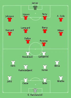 - 1 2 "Tactical Line-up – Group C – Slovenia-England" (PDF). FIFA.com. Fédération Internationale de Football Association. 23 June 2010. Archived from the original (PDF) on 9 November 2012. Retrieved 23 June 2010.