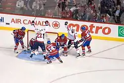 Montreal's point difference in the series was the fifth largest point differential (33 points) for a lower-seeded team beating a higher-seeded team in playoff history. It was also the first time an eighth-seeded team came back against a number one seed after being down 3–1 in the series, and the only time until 2023 when the Florida Panthers did so against the Boston Bruins.[3] Montreal goaltender Jaroslav Halak made 45 saves and Tomas Plekanec won game one for the Canadiens with his goal 13:19 into the first overtime period. Washington forward Nicklas Backstrom scored the overtime winner in game two and completed a hat-trick with his goal 31 seconds into the first overtime period to give Washington a 6–5 win; Andrei Kostitsyn also scored a hat-trick during this game in a losing effort for the Canadiens. After a scoreless opening period in game three, the Capitals scored four times in the second period as they earned a 5–1 victory. Washington forward Alexander Ovechkin recorded three points as the Capitals won game four 6–3. Jaroslav Halak returned in game five for Montreal after sitting out the previous game and posted 37 saves as the Canadiens avoided elimination with a 2–1 win. Michael Cammalleri scored twice in the opening period of game six for Montreal and Jaroslav Halak made 53 saves as the Canadiens forced a seventh-game with a 4–1 victory. Montreal forward Dominic Moore scored the series-clinching goal late in the third period of game seven as the Canadiens hung on to a 2–1 decision.