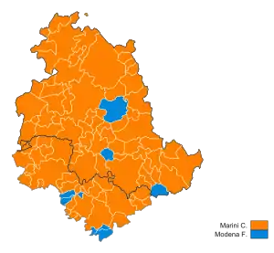 The three main candidates were Catiuscia Marini of the Democratic Party, Fiammetta Modena of The People of Freedom and Paola Binetti of the Union of the Centre.
